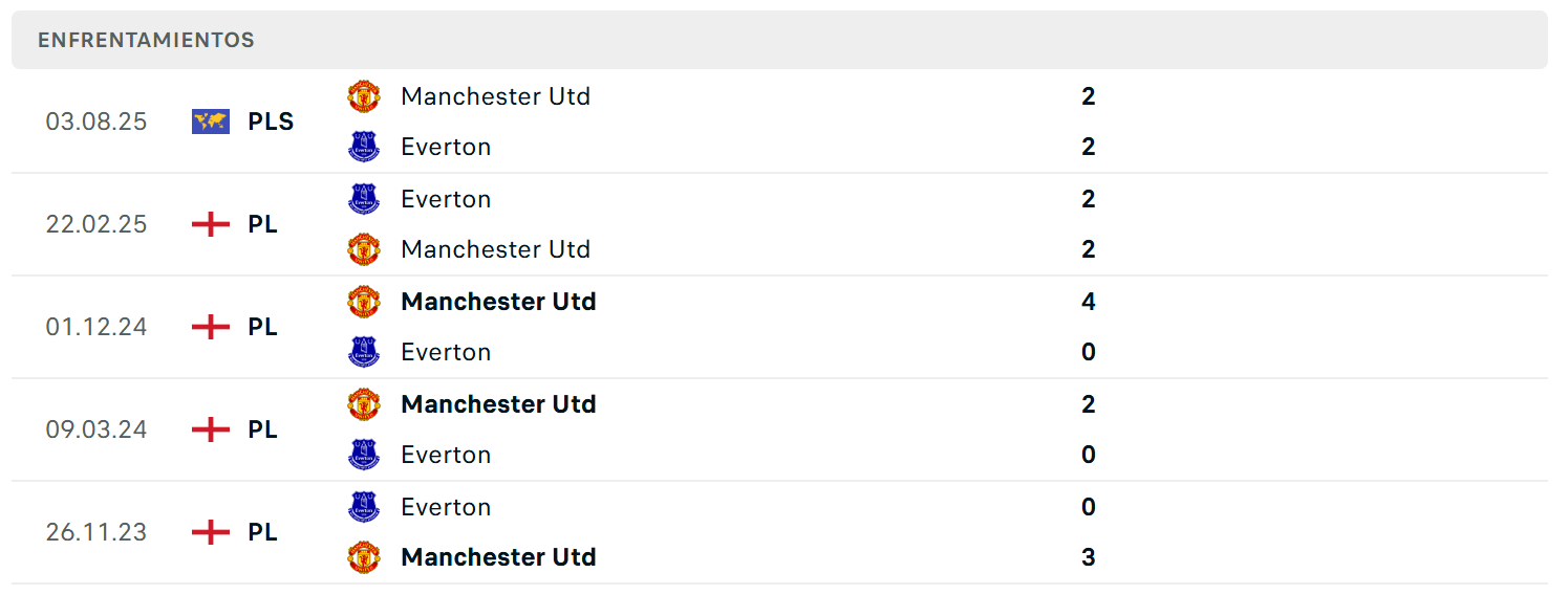 ULTIMOS ENFRETAMIENTOS «MANCHESTER UNITED VS EVERTON»💪